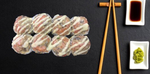 Ролл-угорь, кедровые орешки, имбирь маринованный, сыр творожный, соус, рис, кунжутное семя. Имбирь, соевый соус, васаби не идет в комплекте, заказывать отдельно.