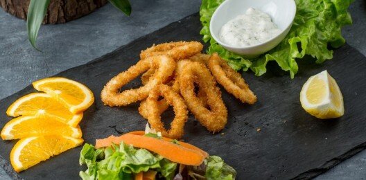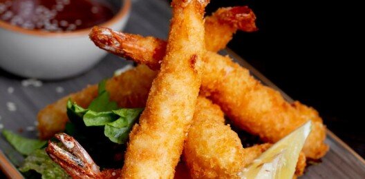 Гребешок запанированный в яйце и сухарях, соус чили.