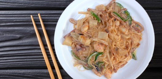 0901 Вок Сомен с креветкой в Сливочном соусе
