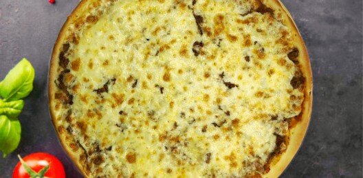 Пицца соус, охотничьи колбаски, болгарский перец, сыр Моцарелла.