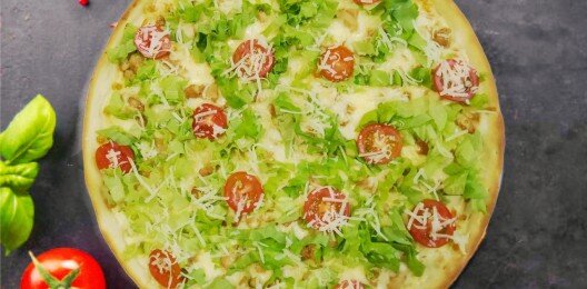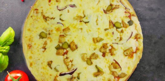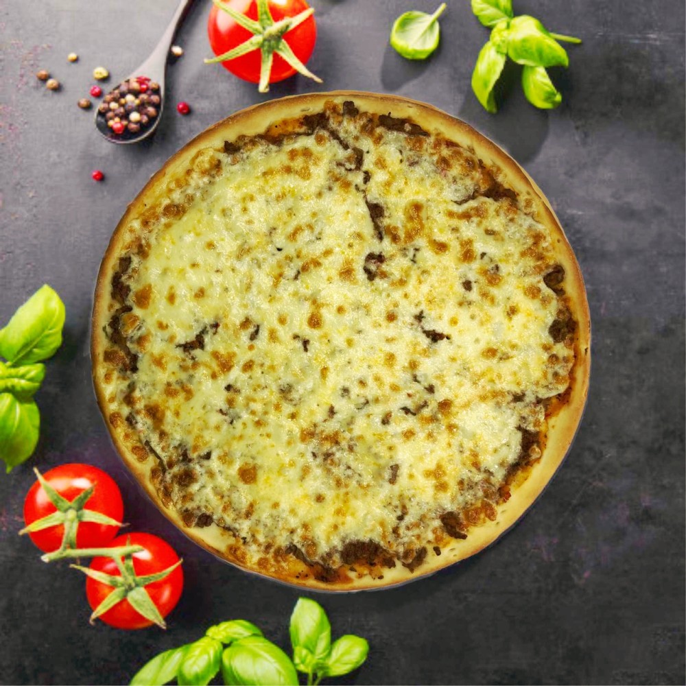 Пицца соус, фарш болоньезе, сыр Моцарелла.