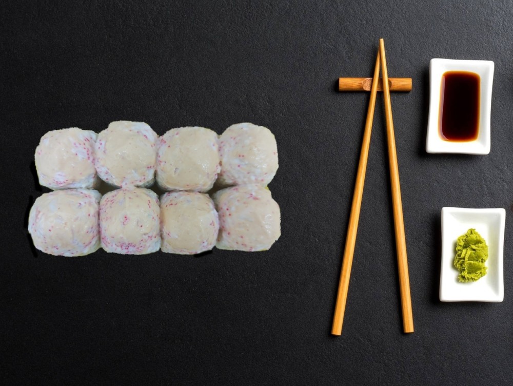 Рис, омлет, огурец, сыр творожный, гребешок, тобико, спайс Имбирь, соевый соус, васаби не идет в комплекте, заказывать отдельно.