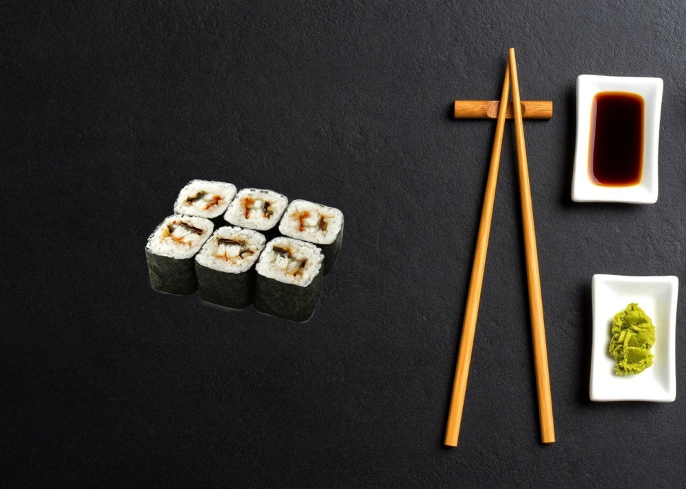 Ролл-угорь, рис. Имбирь, соевый соус, васаби не идет в комплекте, заказывать отдельно.