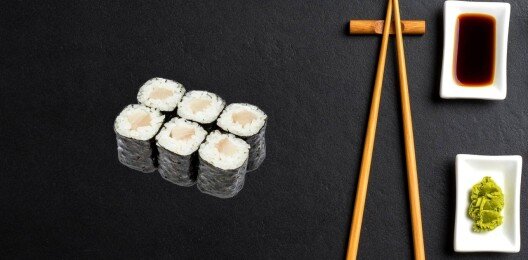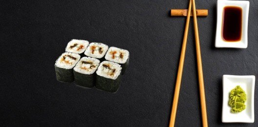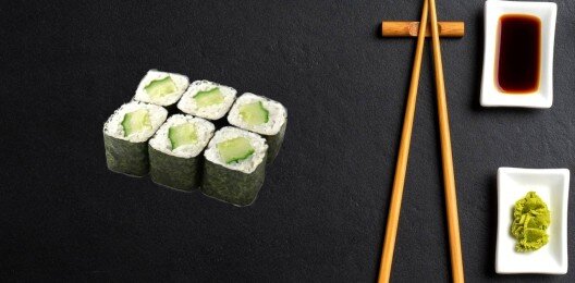 Ролл-авокадо, рис. Имбирь, соевый соус, васаби не идет в комплекте, заказывать отдельно.