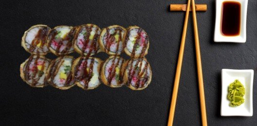 Ролл-лосось, тобико, огурец, рис, соус. Имбирь, соевый соус, васаби не идет в комплекте, заказывать отдельно.